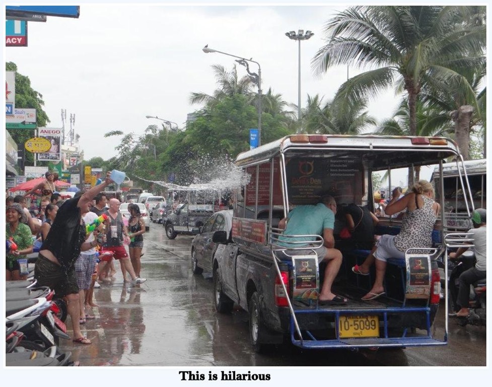 This was my 2nd visit to Thailand during Songkran, held every year from 13th to 15th April. It’s an exciting festival not only for local Thai’s but also for the tourist visiting Thailand. These Americans visiting Thailand are more excited than any other people to celebrate this festival. Actually it’s good to see that tourist are participating so much and also enjoying a lot.